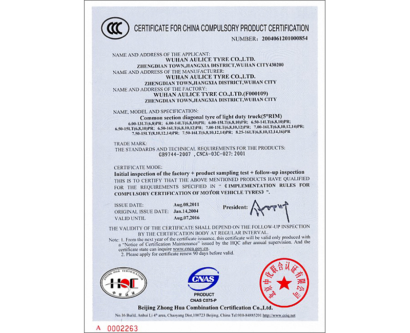 In November 2013, the company's tires officially passed the national "CCC" quality management system certification.